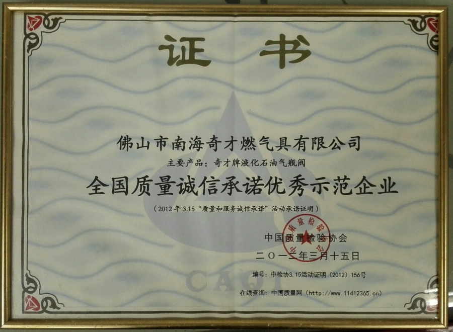 主頁  > 企業榮譽  > 企業榮譽  > 全國質量誠信優秀示范企業證書